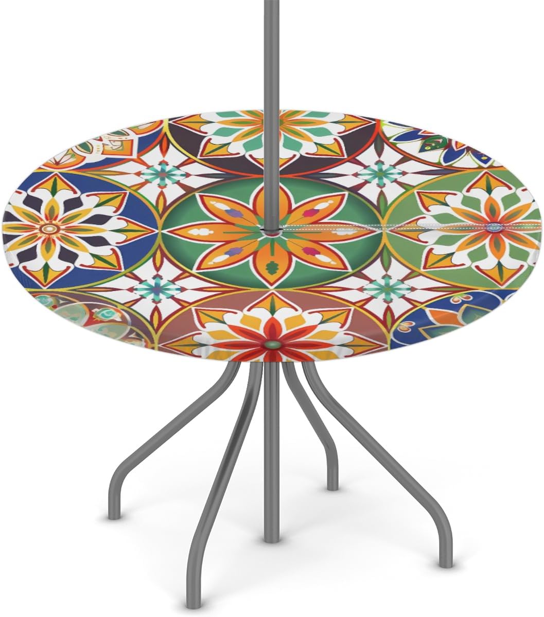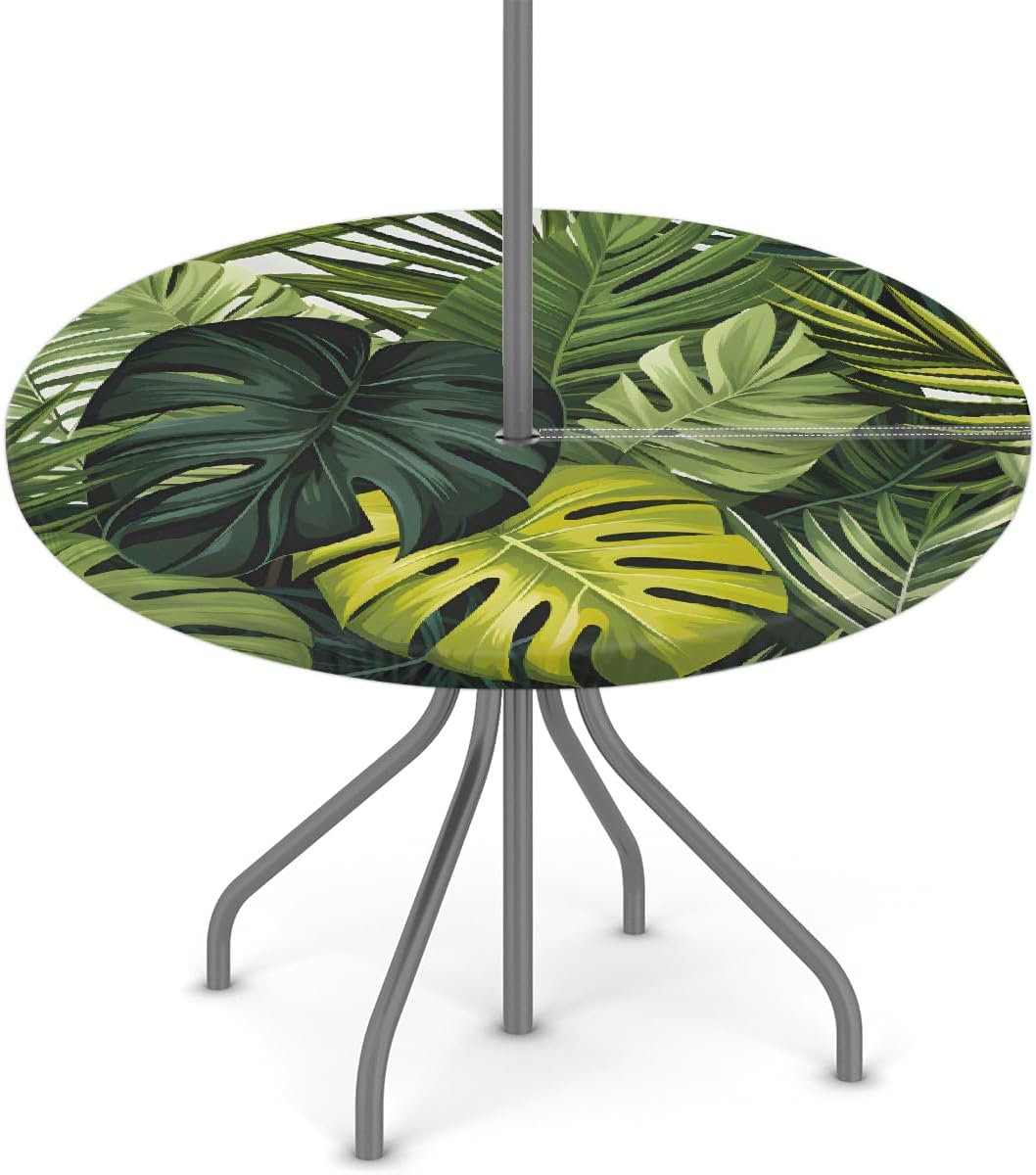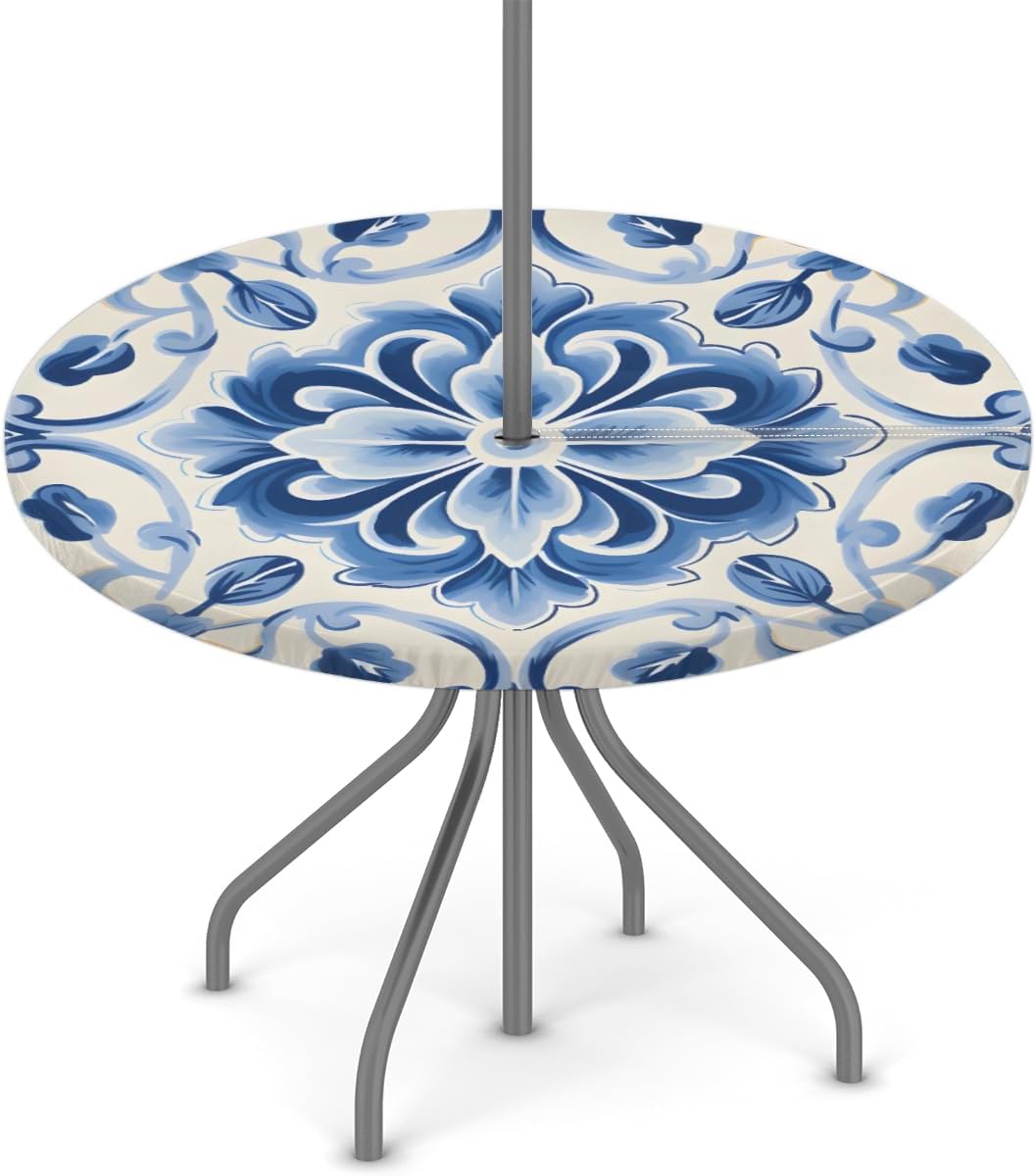 Outdoor Tablecloth with Umbrella Hole Round Fitted Tablecloth with Elastic Edge Table Cove for Patio Picnic Beach Cafes Restaurant Table DIMENSION: The small outdoor fitted tablecloth fit for 36-44 inch round table The large outdoor round fitted tablecloth fit for 45-56 inch round table MATERIAL: Premium polyester with oil-resistant and waterproof coating, shrink resistant, anti-wrinkle for everyday use PRINT: Digitally printing, fade resistant and sunfast for long time use Features: 1. Outdoor tablecloth is equipped with a zipper closure and an umbrella hole, easy to lay and take off 2. Round table cloth with elastic edge, make it won't be blown away by the wind when spread on the outdoor table, safty for daily use 3. Pirinting tablecloths decorate the patio, cafes, farmhouse, restaurant table easily, also perfect for protect your patio table from scratches, stains, spillproof, sun rays. Add elegance and color to your home decor 4. wildly use for party, weddings, catering, dinners, gatherings, brunches, BBQ, buffets, baby showers, birthday, Valentine's Day, St Patricks, Easter, Christmas, Thanksgiving holidays or other events. TIPS: The color of the round dining table cloth may lightly differ from pictures due to different computer displays. Any quality problems with the product, please contact us by Amazon email. Our after-sales team will provide you with the best customer service.