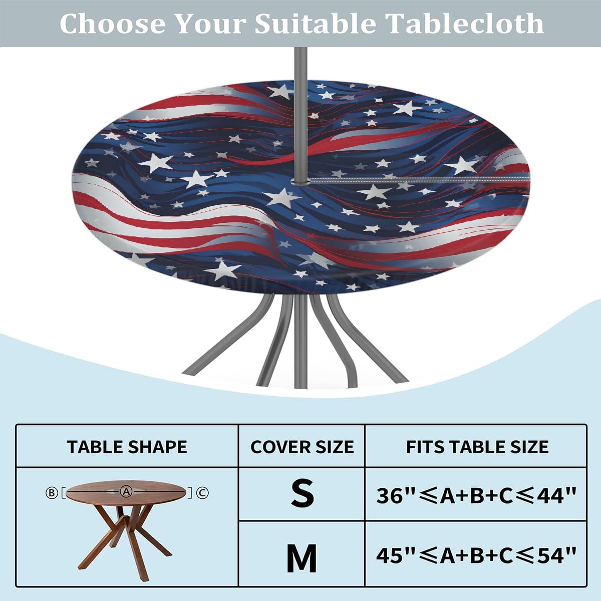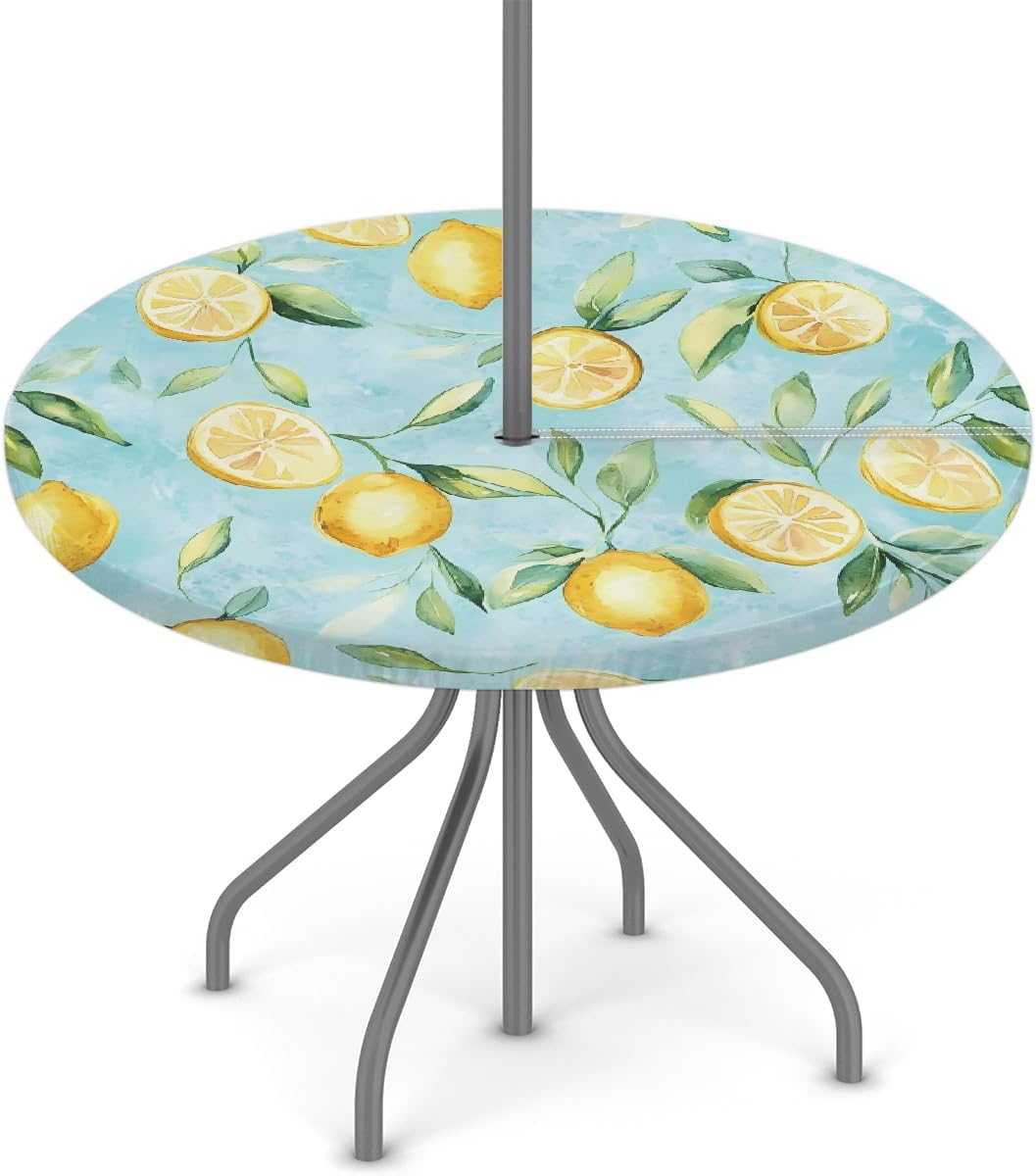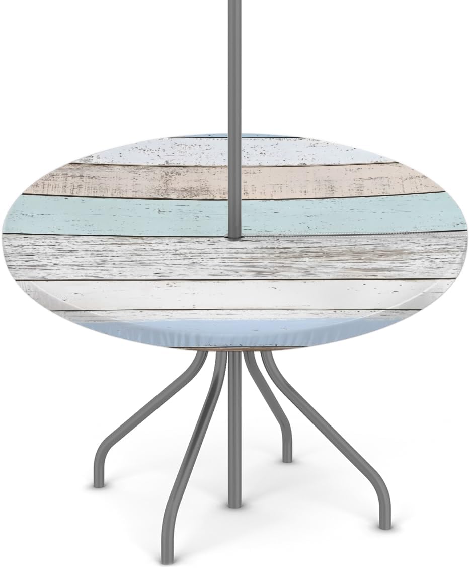 Outdoor Tablecloth with Umbrella Hole Round Fitted Tablecloth with Elastic Edge Table Cove for Patio Picnic Beach Cafes Restaurant Table DIMENSION: The small outdoor fitted tablecloth fit for 36-44 inch round table The large outdoor round fitted tablecloth fit for 45-56 inch round table MATERIAL: Premium polyester with oil-resistant and waterproof coating, shrink resistant, anti-wrinkle for everyday use PRINT: Digitally printing, fade resistant and sunfast for long time use Features: 1. Outdoor tablecloth is equipped with a zipper closure and an umbrella hole, easy to lay and take off 2. Round table cloth with elastic edge, make it won't be blown away by the wind when spread on the outdoor table, safty for daily use 3. Pirinting tablecloths decorate the patio, cafes, farmhouse, restaurant table easily, also perfect for protect your patio table from scratches, stains, spillproof, sun rays. Add elegance and color to your home decor 4. wildly use for party, weddings, catering, dinners, gatherings, brunches, BBQ, buffets, baby showers, birthday, Valentine's Day, St Patricks, Easter, Christmas, Thanksgiving holidays or other events. TIPS: The color of the round dining table cloth may lightly differ from pictures due to different computer displays. Any quality problems with the product, please contact us by Amazon email. Our after-sales team will provide you with the best customer service.