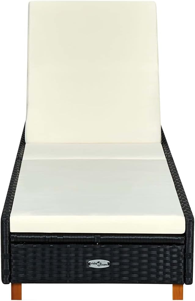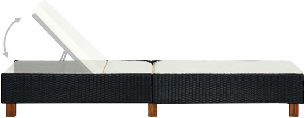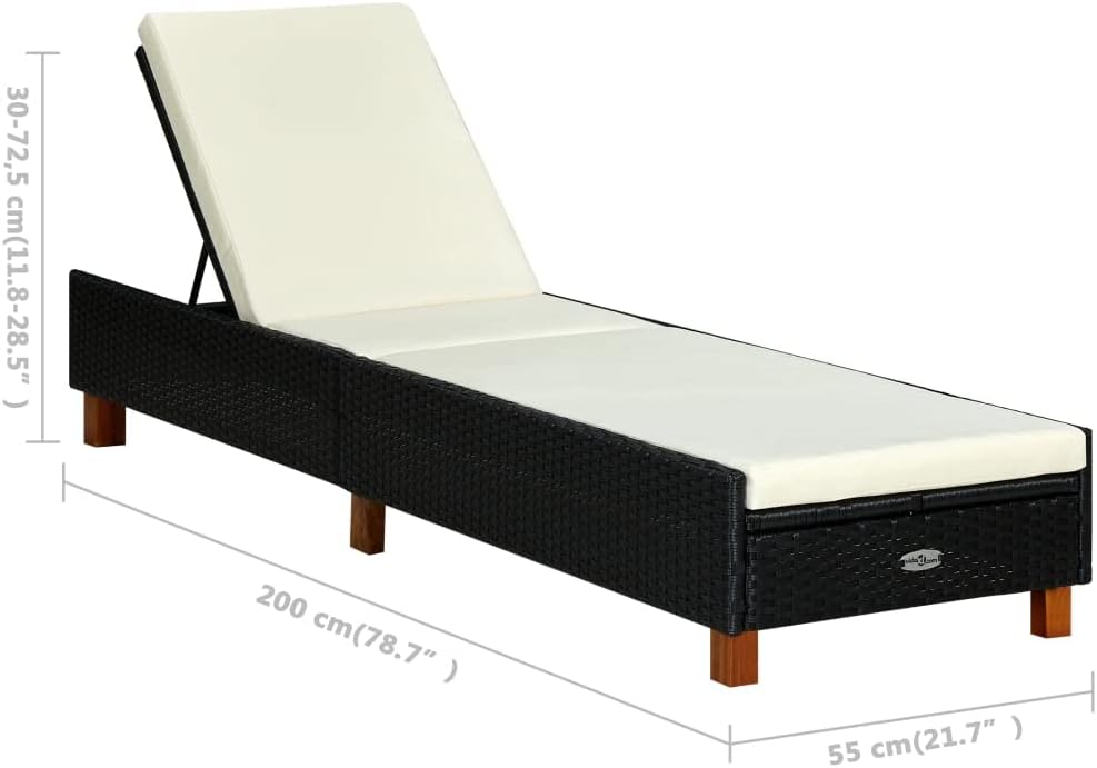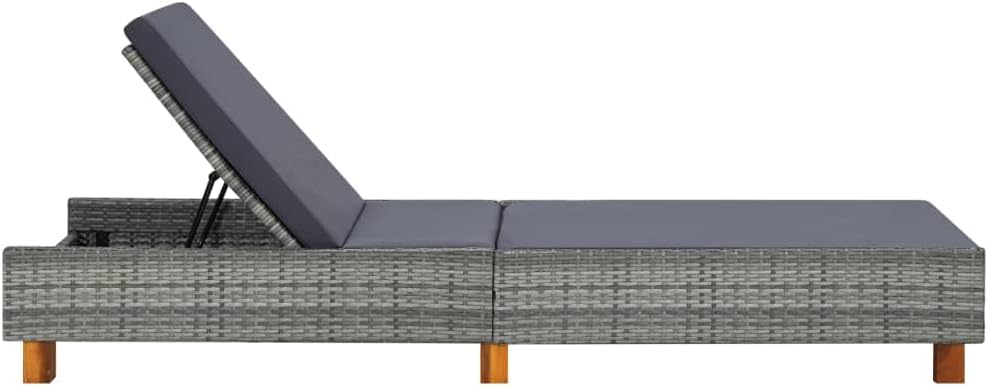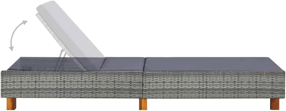 Sit back and enjoy a wonderful relaxing time with this comfortable sunbed!This sun lounger is made of weather-resistant PE rattan, easy to clean, hard-wearing, and suitable for daily use. It features a sturdy powder-coated steel frame, making this recliner very stable and durable. The solid acacia wood legs add to its stability. The backrest of the bed can be pulled up and adjusted in different settings for the most comfortable seating or lying positions. The thickly padded cushion provides the ultimate comfort and added support.Note: We recommended covering the sunbed in the rain, snow and frost for long-lasting use.Poly rattan color: GrayCushion color: Dark grayMaterial: PE rattan, powder-coated steel, solid acacia wood with an oil finish, fabric (100% polyester)Dimensions: 78.7" x 21.7" x 11.8"-28.5" (L x W x H)Lying area size: 78.7" x 19.7"/20.1" (L x W)Backrest size: 26" x 19.7" (L x W)Cushion thickness: 2.4"Adjustable backrestAssembly required: Yes